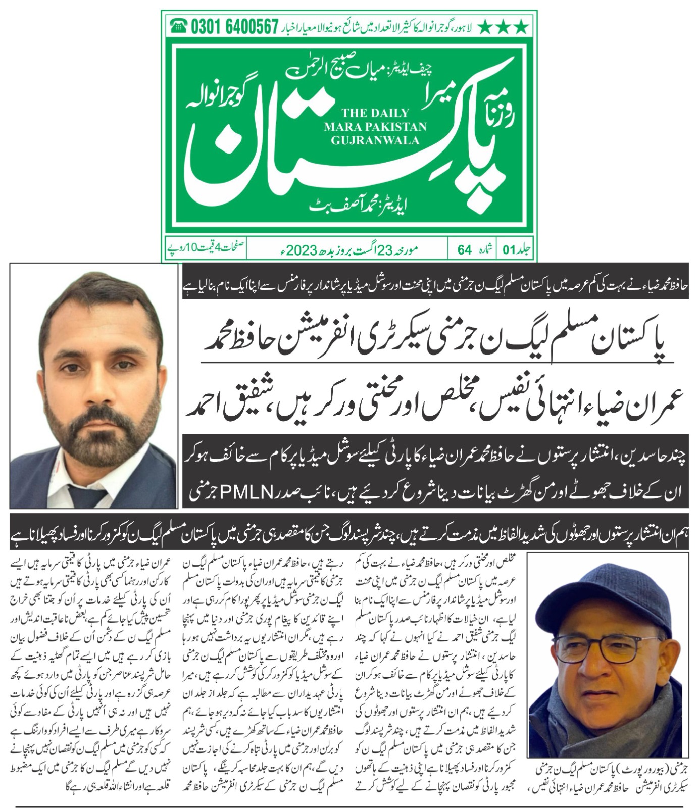 حضرت شفیق صاحب – دوسرے دوستوں کی جناب عمران ضیاء کے بارے میں رائے آپ سے مختلف ہے-یہ پارٹی کے سینئر ممبران سے بدتمیزی کے مرتکب ہوئے ہیں -جو کہ نہایت ہی افسوس ناک فعل ہے-باقی پارٹی کے لئے ہم سب اپنی عقل سمجھ بوجھ اور ہمت کے مطابق کچھ نہ کچھ کام ضرور کرتے ہیں -دوستوں کو یہ تاثر دینا کہ پارٹی میں صرف ایک ہی شخص کام کرتا ہے تو یہ ان کہ حوصلہ شکنی ہو گی – اگر آپ اس شخص کے مخالف ہر دوست پر شرپسند اور جھوٹے کا لیبل لگائیں گے تو پارٹی میں نیک نام صرف آپ دونوں ہی رہ جائینگے-آدمی کو الفاظ کے چناؤ میں احتیاط کرنی چاہئے-