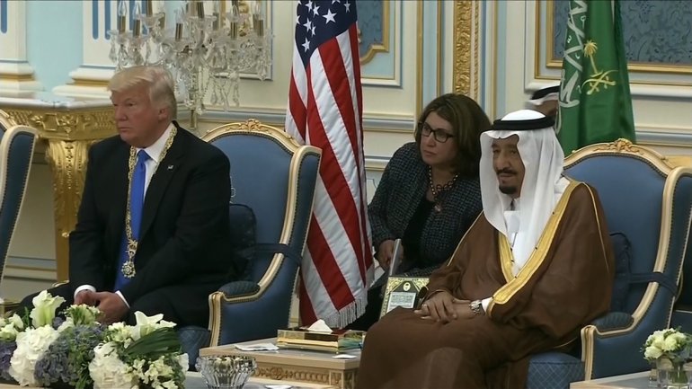 امریکن صدر کا ریاض میں والہانہ استقبال کیا گیا اور شاہ سلمان بن عبدالعزیز نے انھیں خود خوش آمدید کہا اور انہیں سعودی عرب کے سب سے بڑے اعزاز سے نوازا گیا-