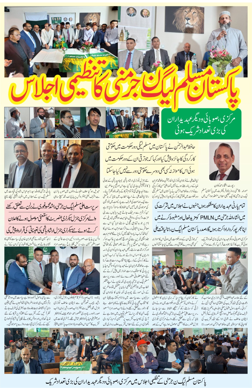 کل مورخہ 6 مئی پاکستان مسلم لیگ نون جرمنی کا اجلاس فرینکفرٹ میں منعقد ہوا-جناب حافظ عبدالرحمن چیئرمین اور صدر جناب رانا لیاقت علی صدر پاکستان مسلم لیگ نون جرمنی کے علاوہ نئے منتخب جنرل سیکریڑی جناب ارشاد ہاشمی ، جناب عمران رضا، جناب ٹکا خان اور دیگر پارٹی راہنماؤں نے ملک کی سیاسی صورت حال اور ملک کو درپیش معاشی اور سیاسی صورت حال پر اپنے خیالات کا اظہار کیا-حاضرین پارٹی قیادت اور منشور سے کومیٹڈ تھے اور ان میں عالمی سازشوں کے شکار مملکت خداداد پاکستان کی خدمت کا جنون تھا-پارٹی میں نظریاتی گروپ پارٹی مخالفین سے کسی طرح بھی مفاہمت کرنے پر تیار نہیں دکھائی دے رہا تھا -مسلم لیگ کا مقابلہ طاغوت سے ہے جو بیرونی دشمنوں کے ایجنڈے کی تکمیل کے لئے ملک کو گزد پہنچانے کا درپے ہے اور ہر مسلم لیگی کا فرض ہے کہ وہ نظریہ پاکستان کی حفاظت کے لئے طاغوت سے نبر وآزما ہونے کے لئے کمر بستہ ہو جائے-مسلم لیگ نے پاکستان بنایا تھا اور صرف مسلم لیگ ہی ملک بچا سکتی ہے-ملک کی تعمیر و ترقی کے لئے قرارداد منظور کی گئی جسے راشد غوری صاحب نے پیش کیا اور نو منتخب عہدے داران اور کارکنوں سے حلف لیا گیا-آخر میں ملک کی سلامتی کے لئے دعا خیر کی گئی-